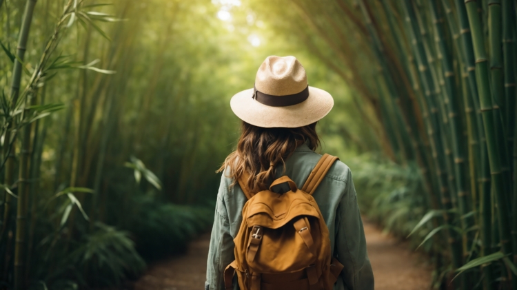 backpackerBamboo Forestfemale travelerhat and backpackSerene Bamboo Forestsolo travelertravel photography