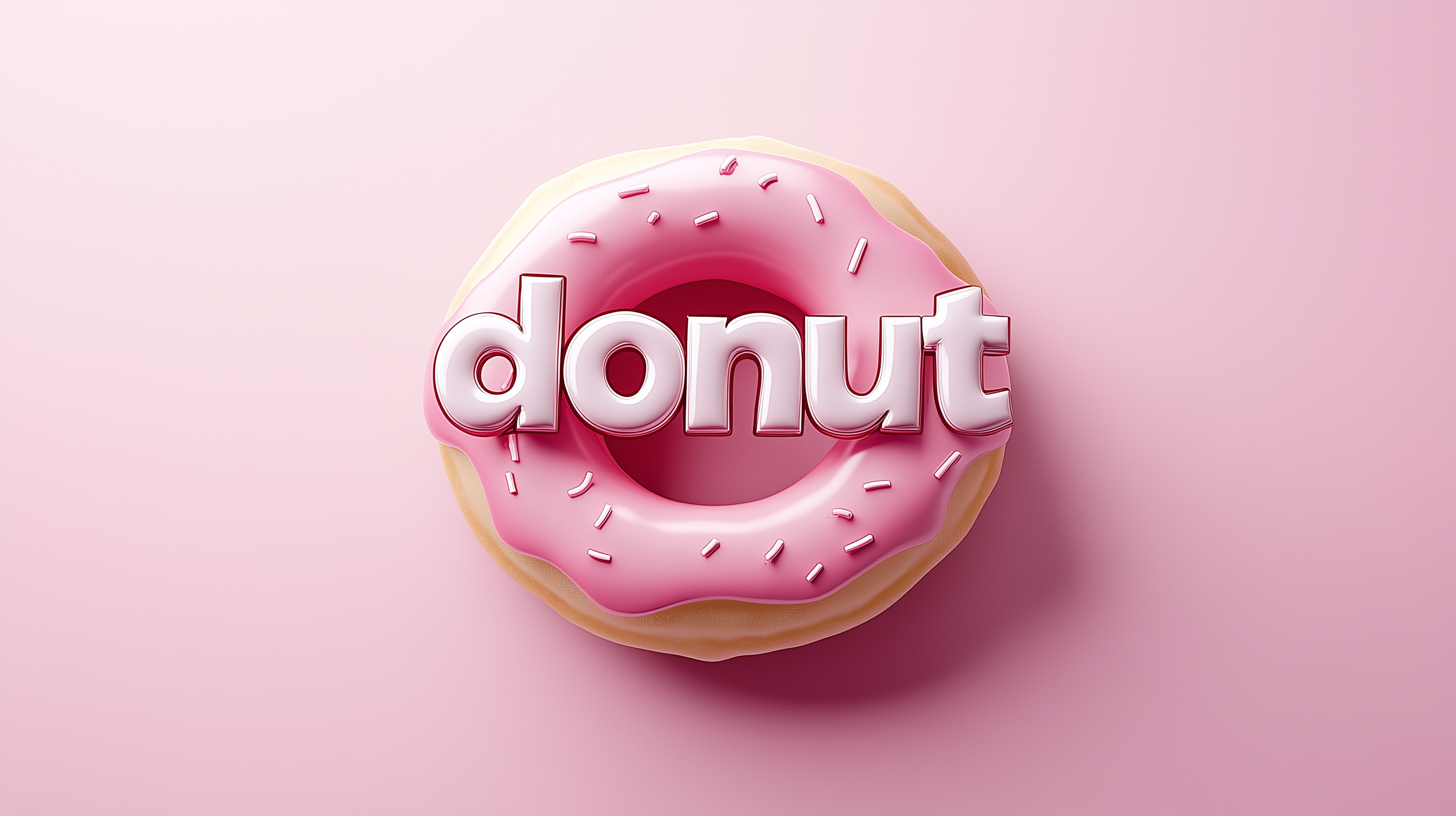 The word “donut” appears in 3D typography on a pink background. The design is minimal, cute, and straightforward, focusing on simplicity.