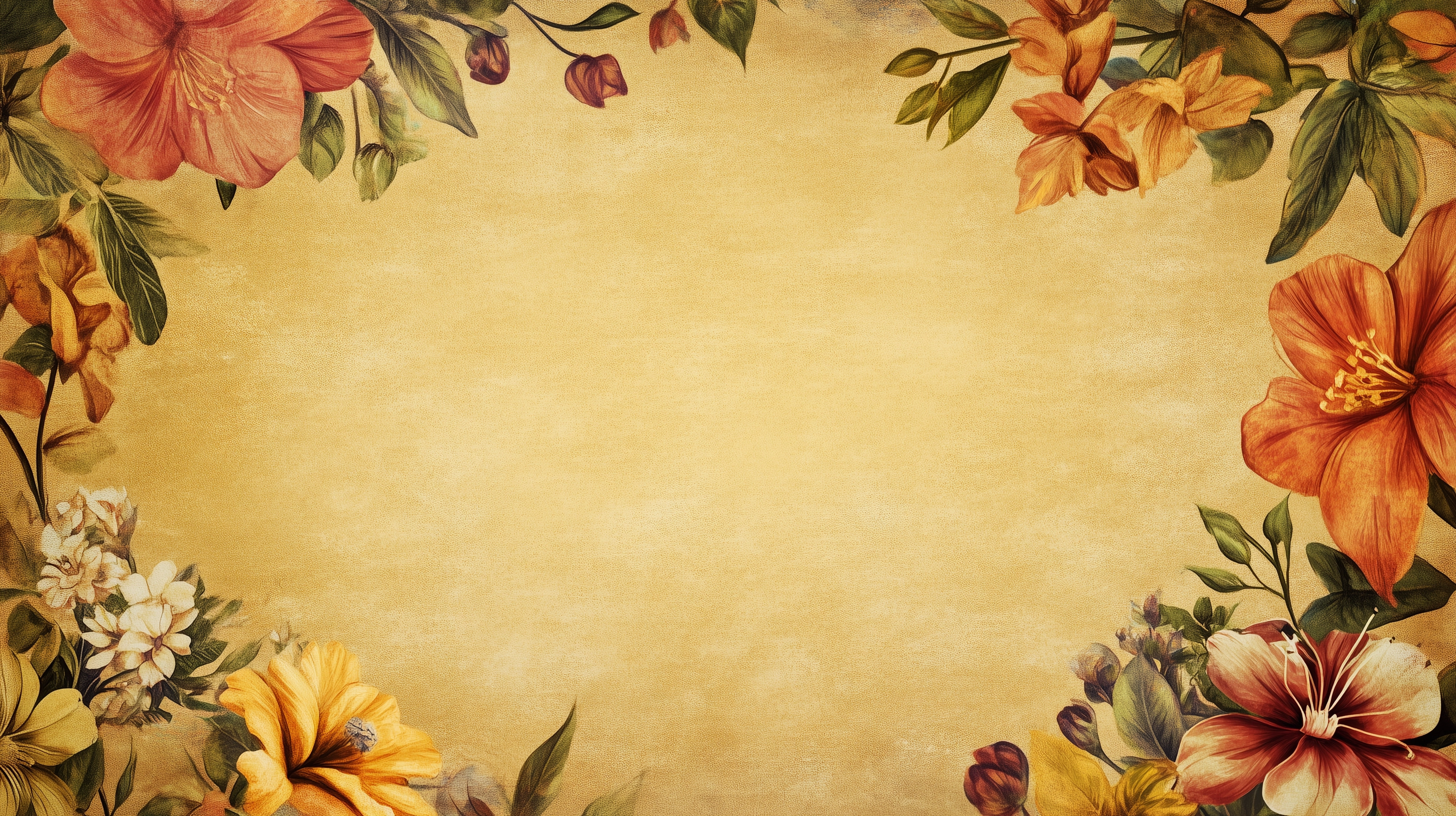 This free AI generated vintage floral border background features warm tones and delicate flowers arranged in a classic elegant style. The soft color palette and timeless design make it perfect for creative and artistic digital projects that need a warm inviting touch.